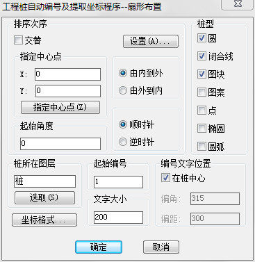 Автоматическое количество инженерных свай и извлечь координатную программу-фан-в форме расположения SXBH CAD Incremental Arc