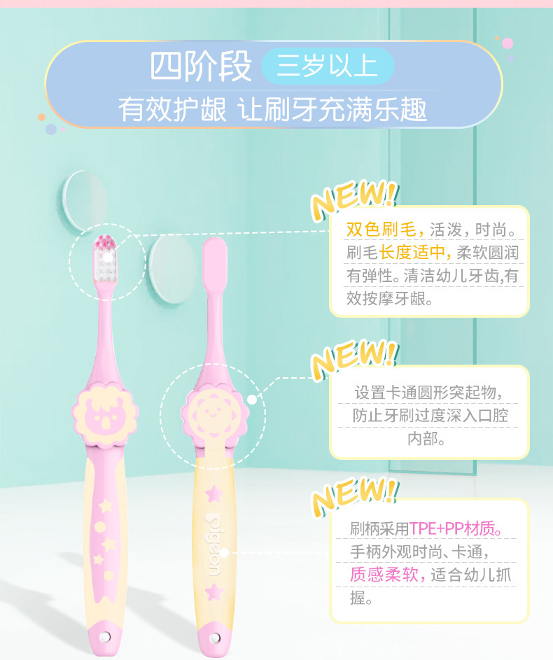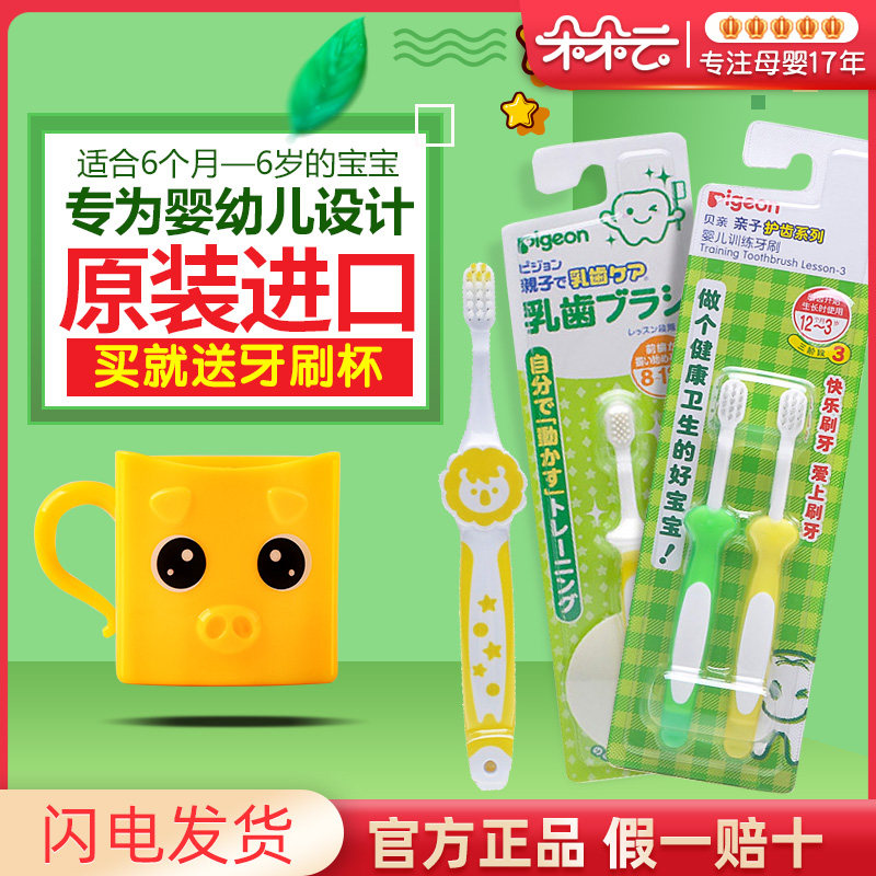 Pigeon, детская мягкая импортная зубная щетка для младенца для тренировок, 0-1-2-3-6 лет