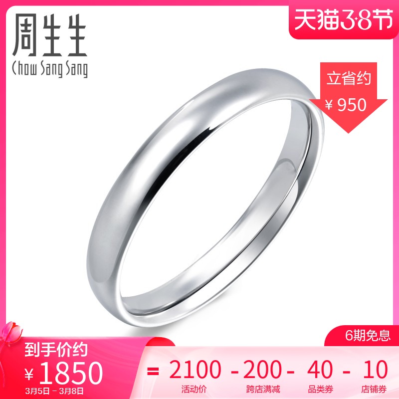 周生生 Белое золотое кольцо для влюбленных подходит для мужчин и женщин, золото 750 пробы
