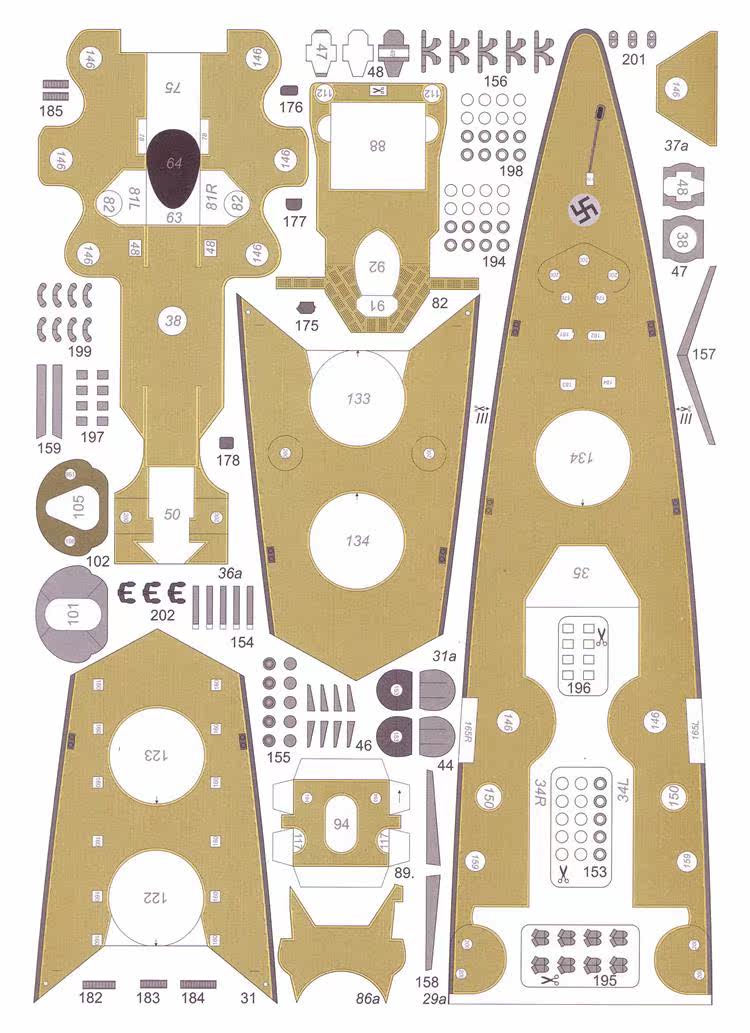 Согласно инструкциям, различные части корабля выбираются в различные формы корабля 1938 или 1945