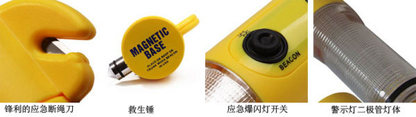 2,Резак: Крюк -встроенный нож, отрежьте ремень безопасности, чтобы сбежать, когда авария.