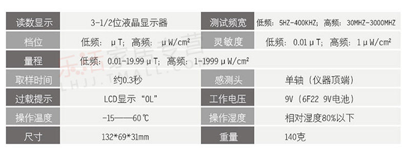 Количество: низкая частота: 0,01μT—19.99Μ t; высокая частота: 1μW/cm2—1999μW/cm2