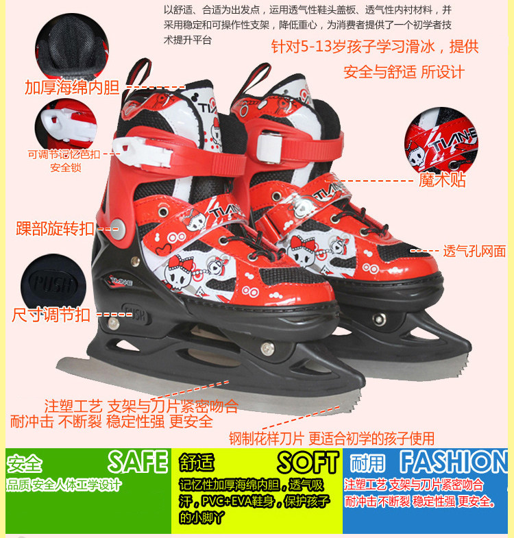 Детские туфли с ледяным ножом милые кошки, мужчины и женские туфли с ножом могут отрегулировать размер первой школы, настоящие коньки на льду