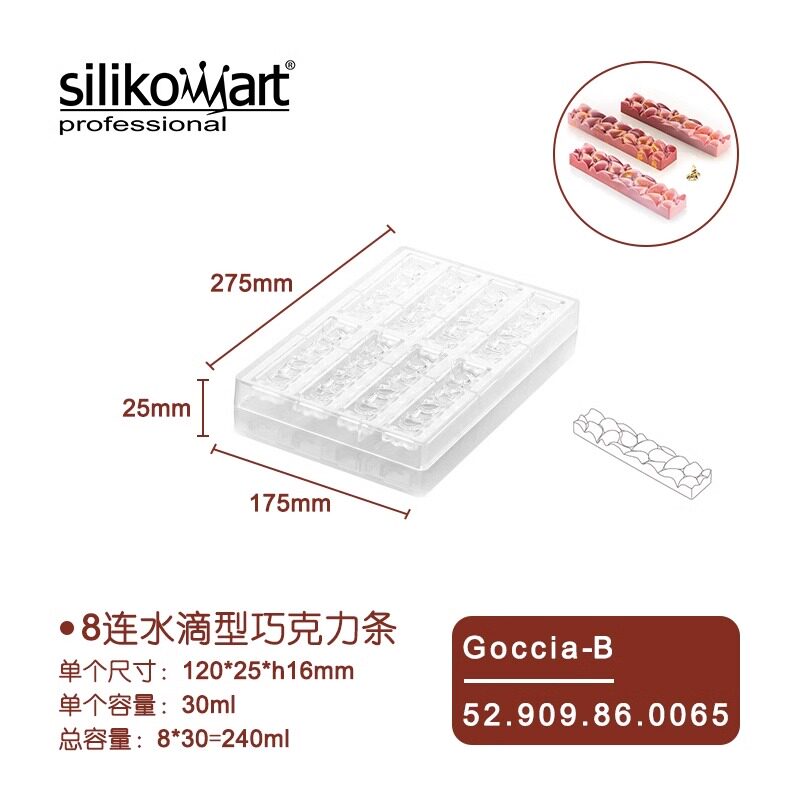 Импортировано из Италии Silikomart Goccia, серия Water Drop, форма для шоколада, блок / полоса / пластина.