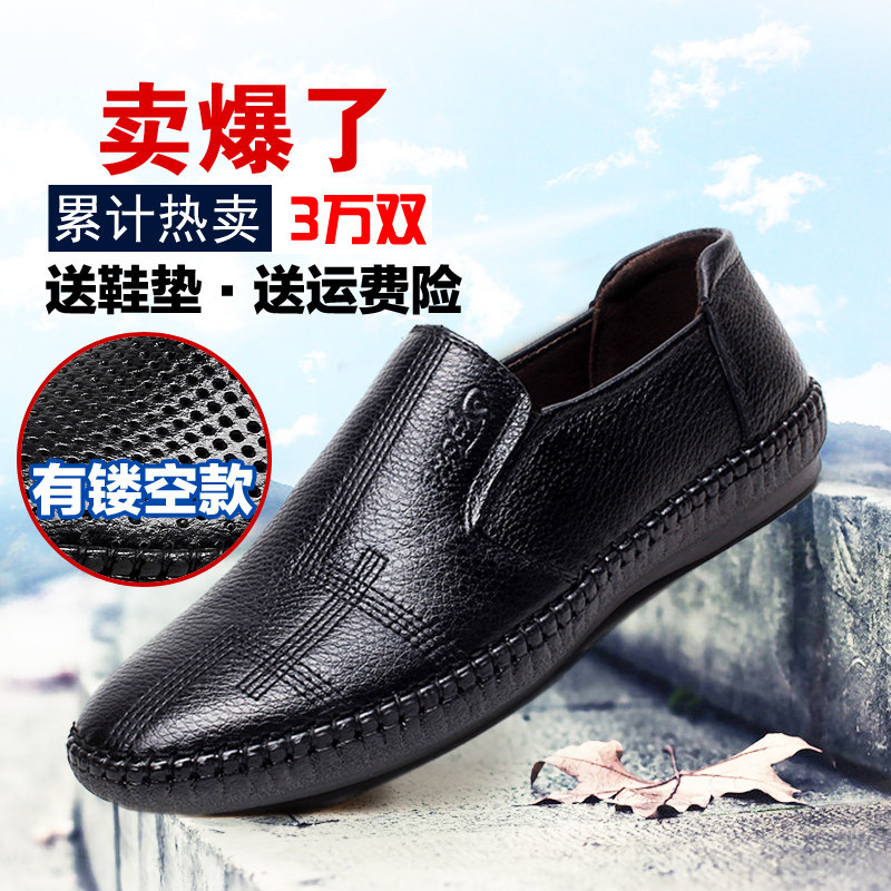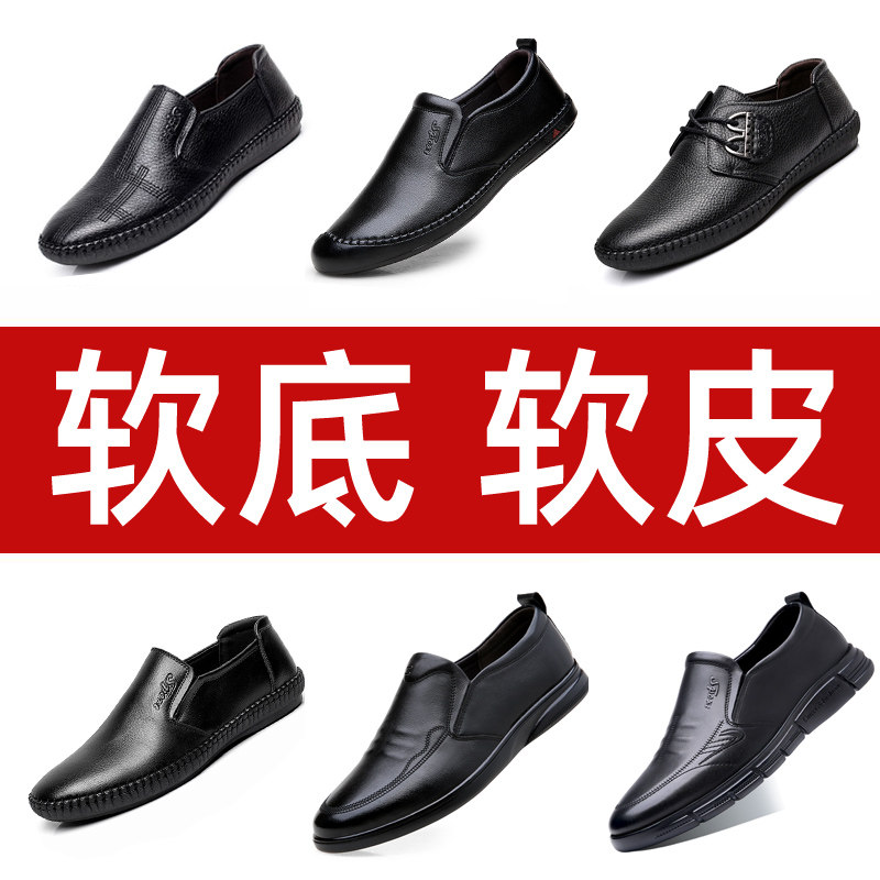 Мягкая подошва, мягкая поверхность, кожаная мужская обувь весной, осенью и летом, 𫔭автоботинки мужские, удобные и легкие, повседневная обувь из натуральной кожи для папы, 𫔮обувь мужская