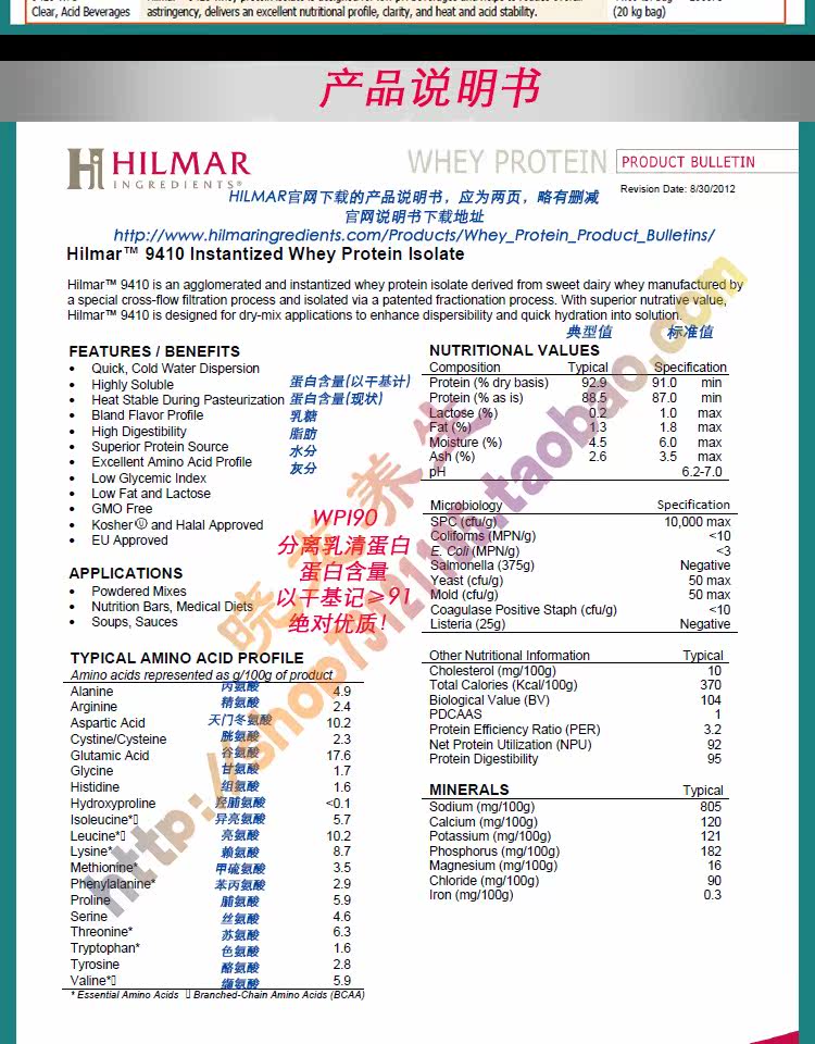 SF U.S. Hilmar9410 Speed -Solubule WPI90 Отдельный западного белкового порошка 20 кг с срок годности до 25 июня