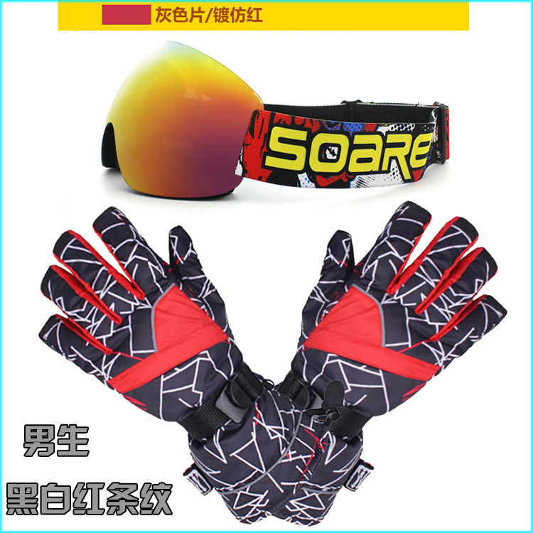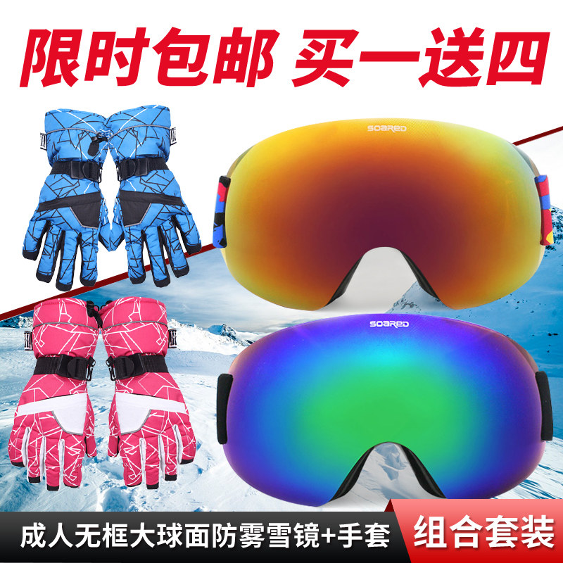 Лыжные ветрозащитные безопасные очки для взрослых, перчатки, набор, комплект