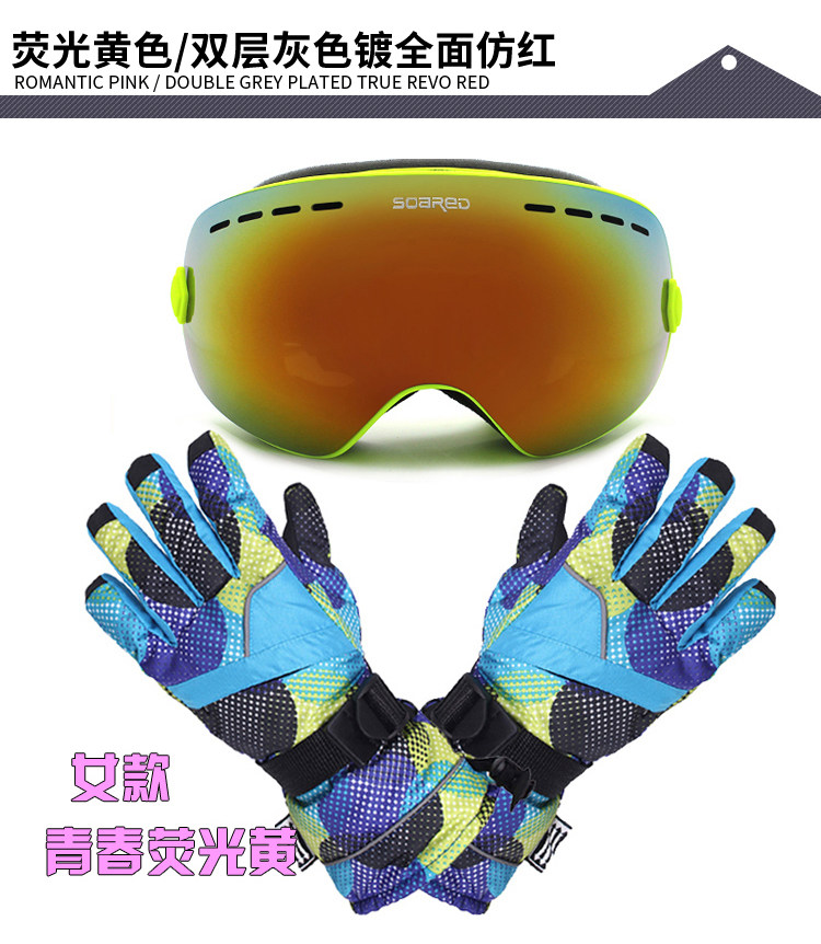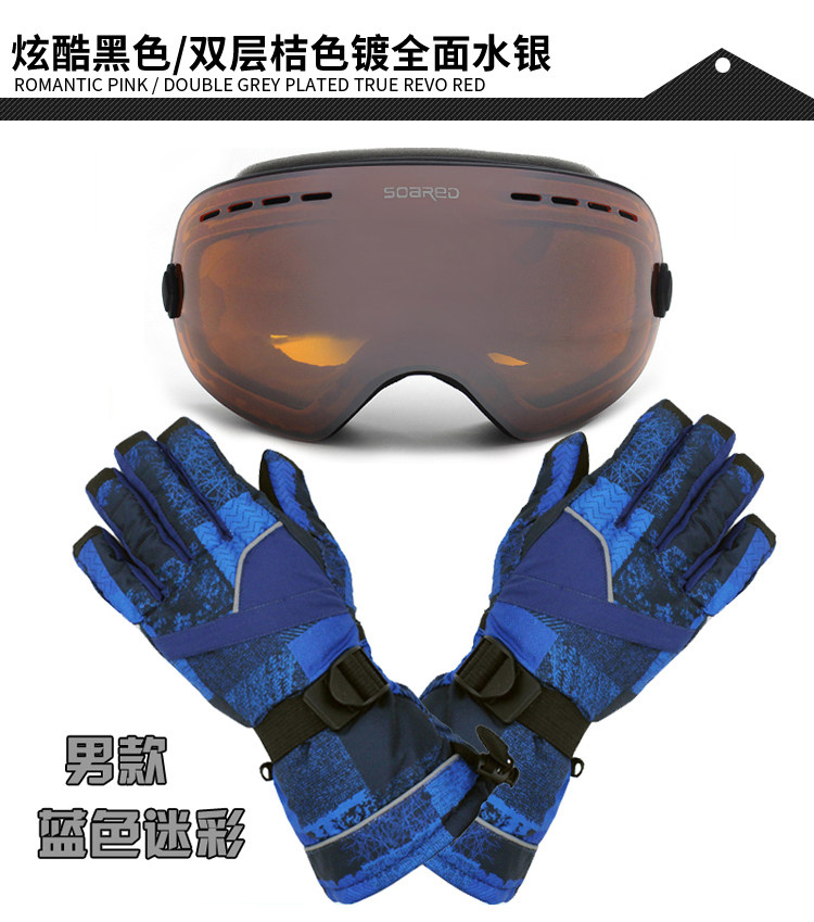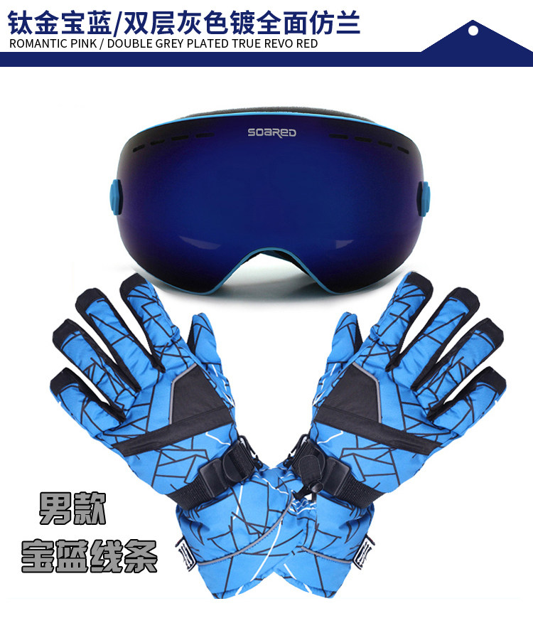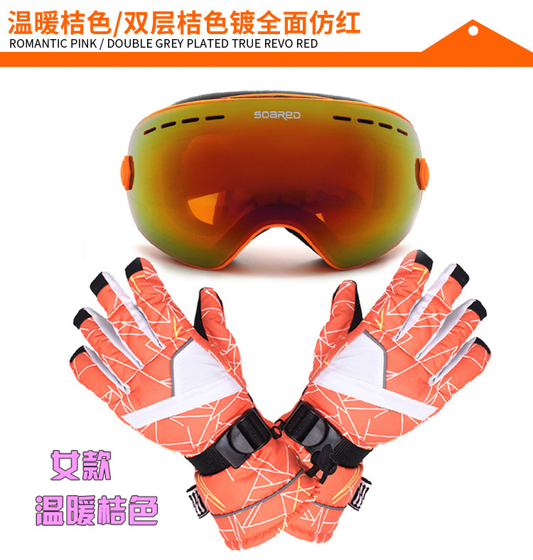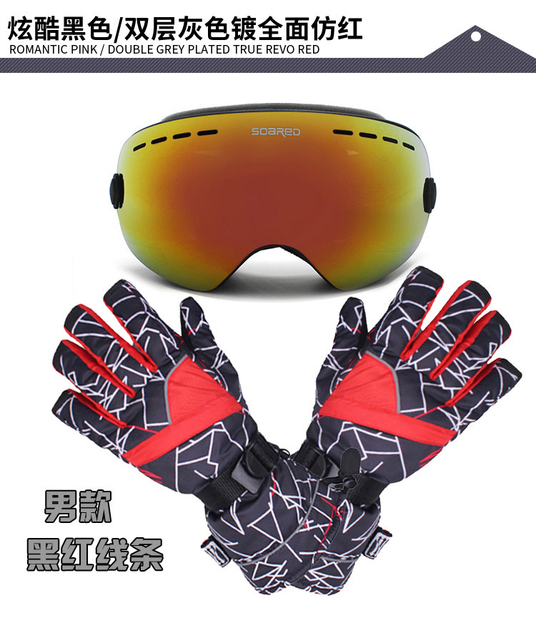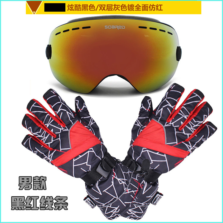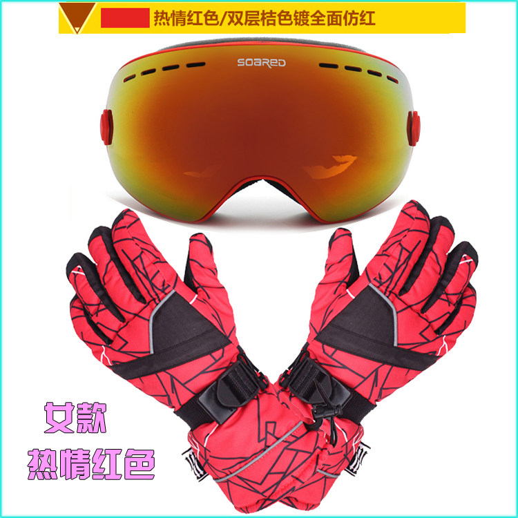 Лыжные ветрозащитные очки подходит для мужчин и женщин, перчатки, набор, комплект