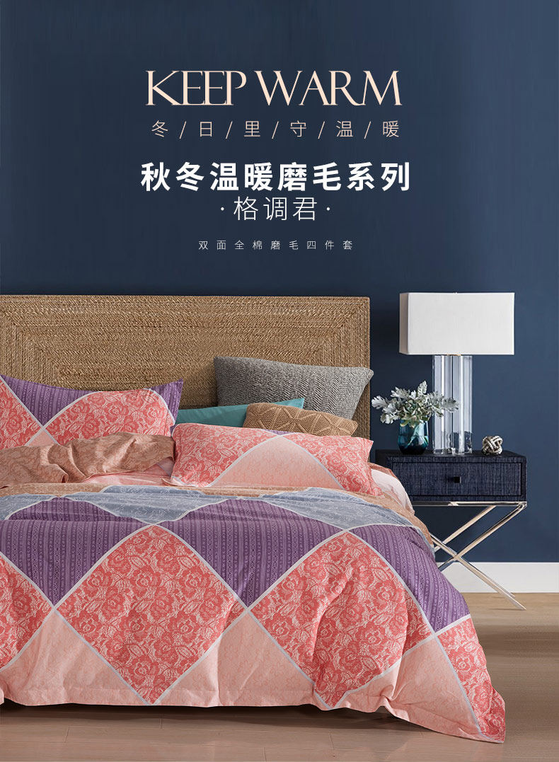黛富妮 Хлопковый демисезонный удерживающий тепло комплект, хлопковая простыня, пододеяльник, 4 предмета, легкий роскошный стиль, увеличенная толщина