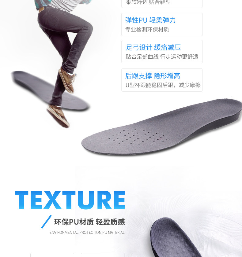 京健达 Спортивные комфортные дышащие стельки для увеличения роста подходит для мужчин и женщин для скалозалания, впитывают пот и запах
