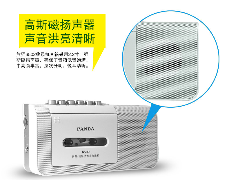 Лента -Player Panda 6502 Пожилая радиокарта со старым портативным маленьким маленьким, включая машину для записи машины