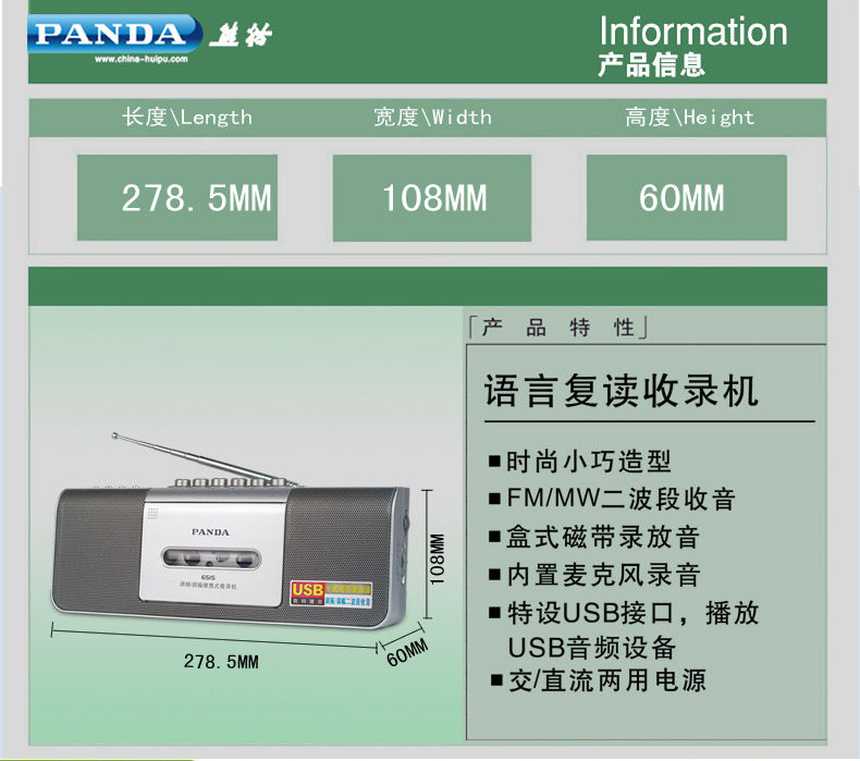 PANDA/熊猫 6515 Портативный многоофункциональный рекордер ленточный штепсец -IN Card Player Small Card с однопользовательским старым игроком ностальгической карты Тип