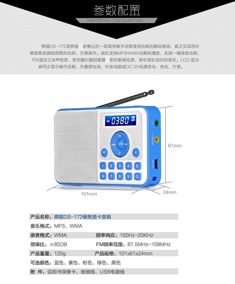Портативный радио-старик Panda DS-172 Mini Charging TF Card FM трансляция полупроводниковых звуковых аргументов