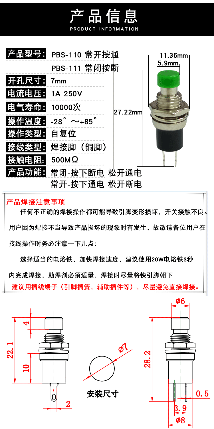 Маленькие кнопки переключатель 6-7 мм кнопка PBS-1110
