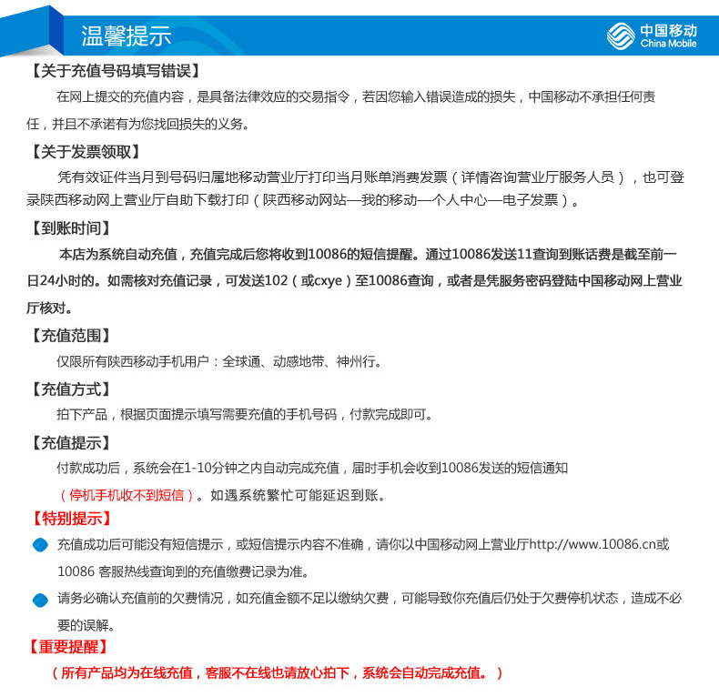 Shaanxi Mobile Phone Телефон Recharge 500 Yuan Fast Charge Direct Charge 24 -часовая автоматическая зарядка быстро