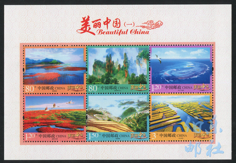 Пляж Сяпу (80 баллов), гора Чжанцзяцзе Тяньцзы (80 баллов), остров Санша Цилиан (1,20 юаней), Красный пляж Паньцзинь (1,20 юаней), рисовые террасы Луншэн (1,50 юаней), Синхуа Дуотянь (3 юаня). Размер марки 40.&раз;30 мм, дизайнер штамповМа Лиханг,Цзян ВейджиСущность