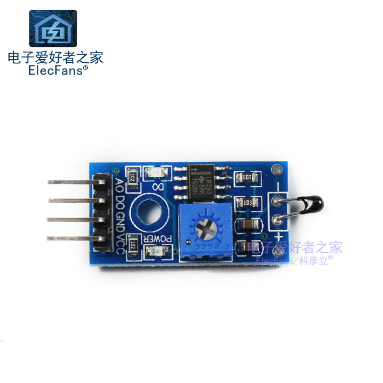 2. Благодаря регулированию потенциометра значения обнаружения температуры могут быть изменены (то есть управление значением температуры). Если температура окружающей среды должна контролироваться при 50 градусах, модуль корректируется на его зеленый свет В соответствующей среде. При установке значения температуры ниже, выходе на высоком уровне, зеленый свет не включен;
