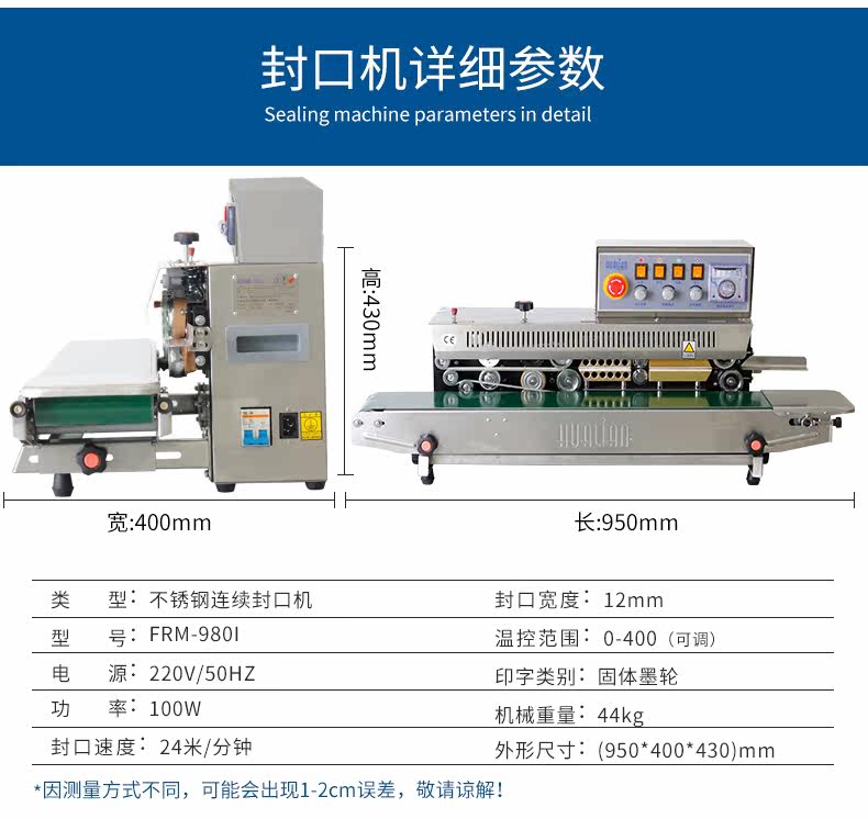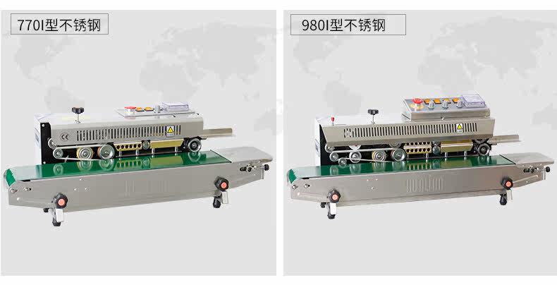 FRM-980[系列墨轮印字连续封口机适用于任何可以热封材料的封口,采用固体墨轮印制有色标签,配有适用于]R[型或]T[型排列的两用印字轮,可印制]R[型]2[行]4[号字](PT18),[或]3[行]5[号字](PT10.5)[,根据需要还可以配置计数装置。]FRM-980[系列有多种机型可供选用:]FRM-980AI[为卧式,]FRM-980AII[为立式,]FRM-980AIII[为落地式。]