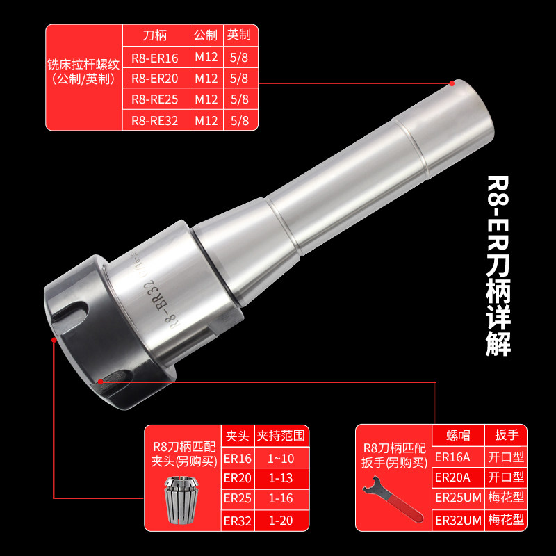 Генеральная фрезерная машина R8-ER16 ER20 ER25 ER32 ER40 Общедоступный металлический металлический пас на британский стержень