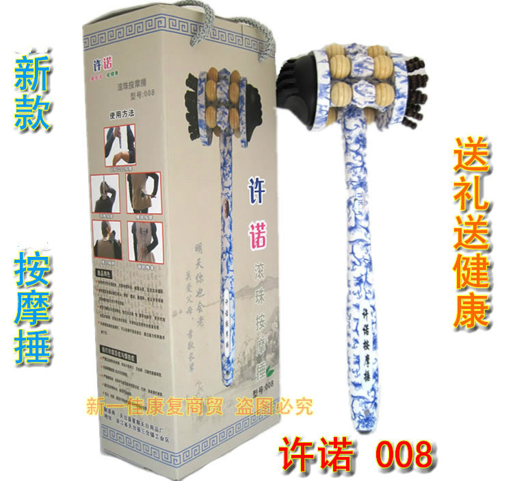 Обещание 008 Массаж молот молоток деревянный молоток, синие и белые фарфоровые бусинки, задняя фитнес -акупунктура точки меридианы, постукивание Родсеров