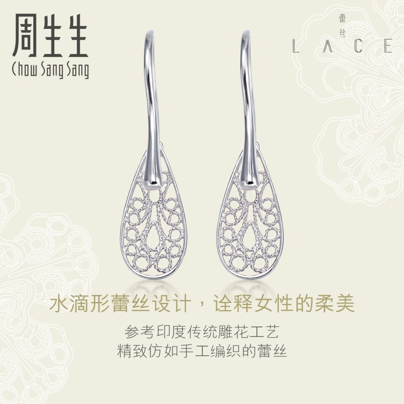 周生生 Платиновые брендовые серьги, платина 950 пробы