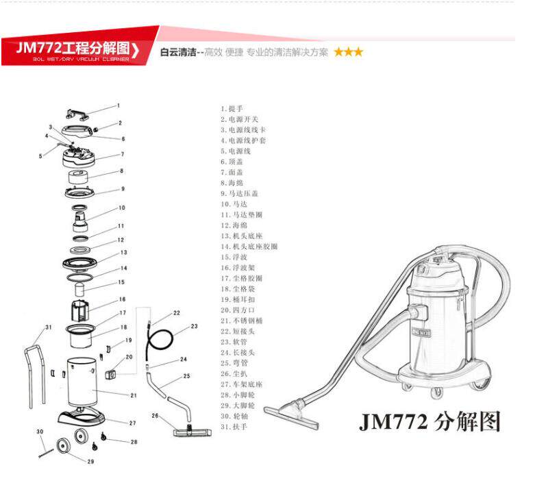 Baiyun Jingmei JM772 Вакуумная очистительная машина для водопоглощения 1500 Вт.