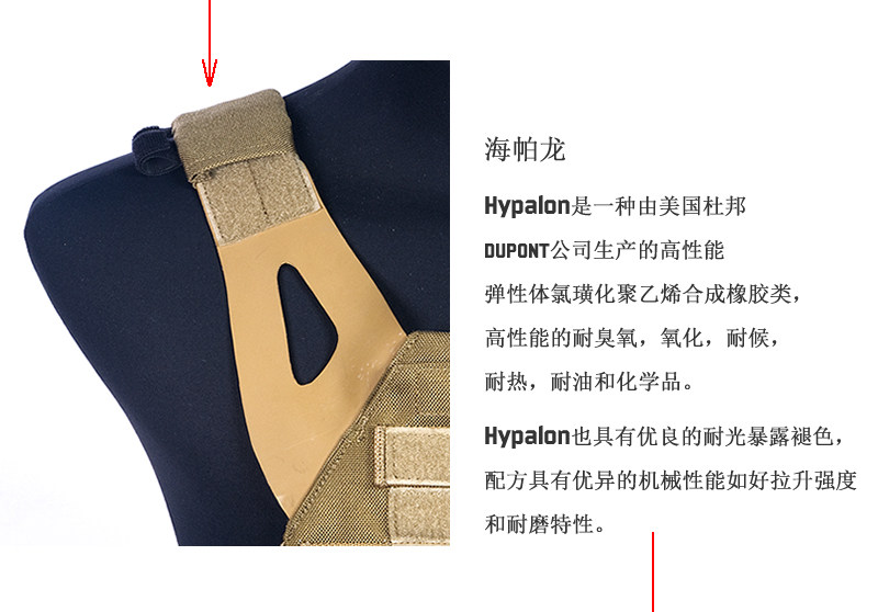 Жилет Сяньги использует тот же материал, что и американский CP, в том числе основная корпусная нейлоновая ткань корпуса и плечо гипалонской резины.