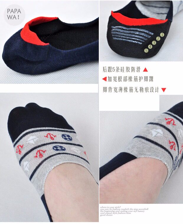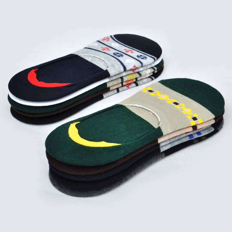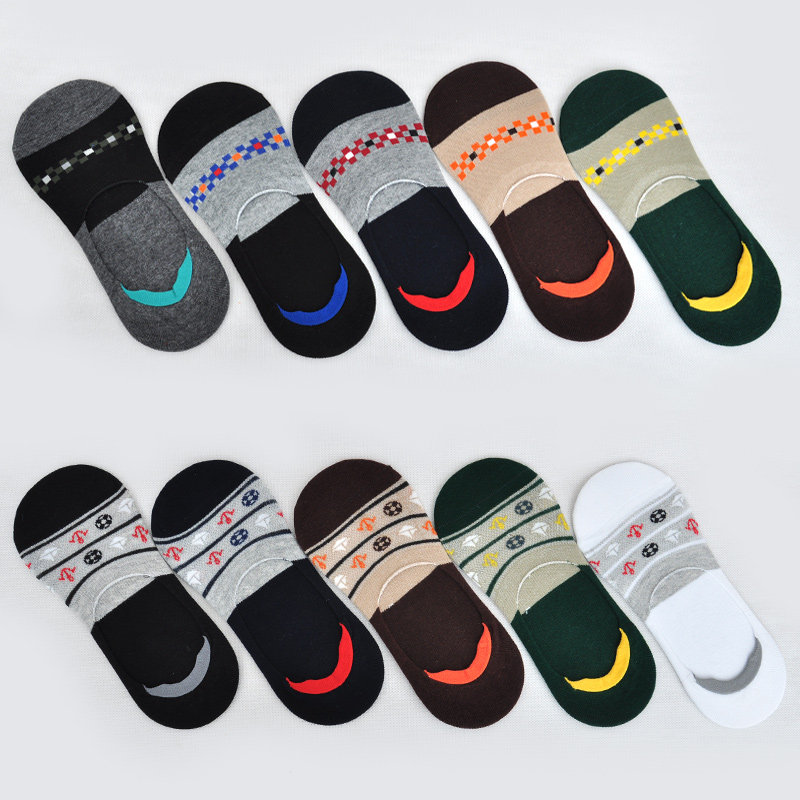 [Получите зазор по цвету утечки] Все хлопковые скрытые носки, слайдные носки, силиконовые, силиконовые, мужские носки фасоли, низкая банда мужчин.