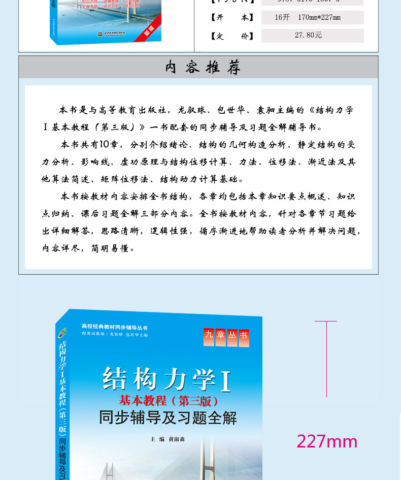"Структурная механика 1: Основное учебное пособие (3 -е издание) Синхронное обучение и полные решения упражнений (новое издание) / Синхронная серия классических учебников в колледжах и университетах&Миддот; Серия девяти главах «может использоваться в качестве учебника по обучению для студентов в высших учебных заведениях для изучения курсов по структурной механике или в качестве учебника по обучению для персонала для вступительных экзаменов аспиранта для рассмотрения и подготовки к экзаменам, а также может использоваться в качестве справочного материала для вопросов подготовки уроков учителей.