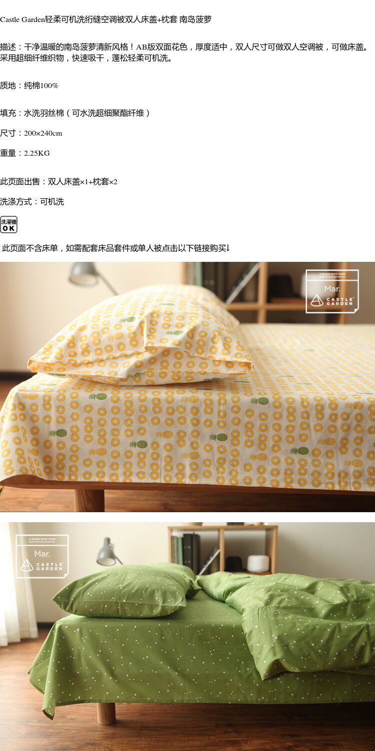 Gulao Garden Мягкая машина вымыла кондиционер шва на крышку с двуспальной кроватью+рукав с подушкой xia liang был Ab noodle South Island Pineapple