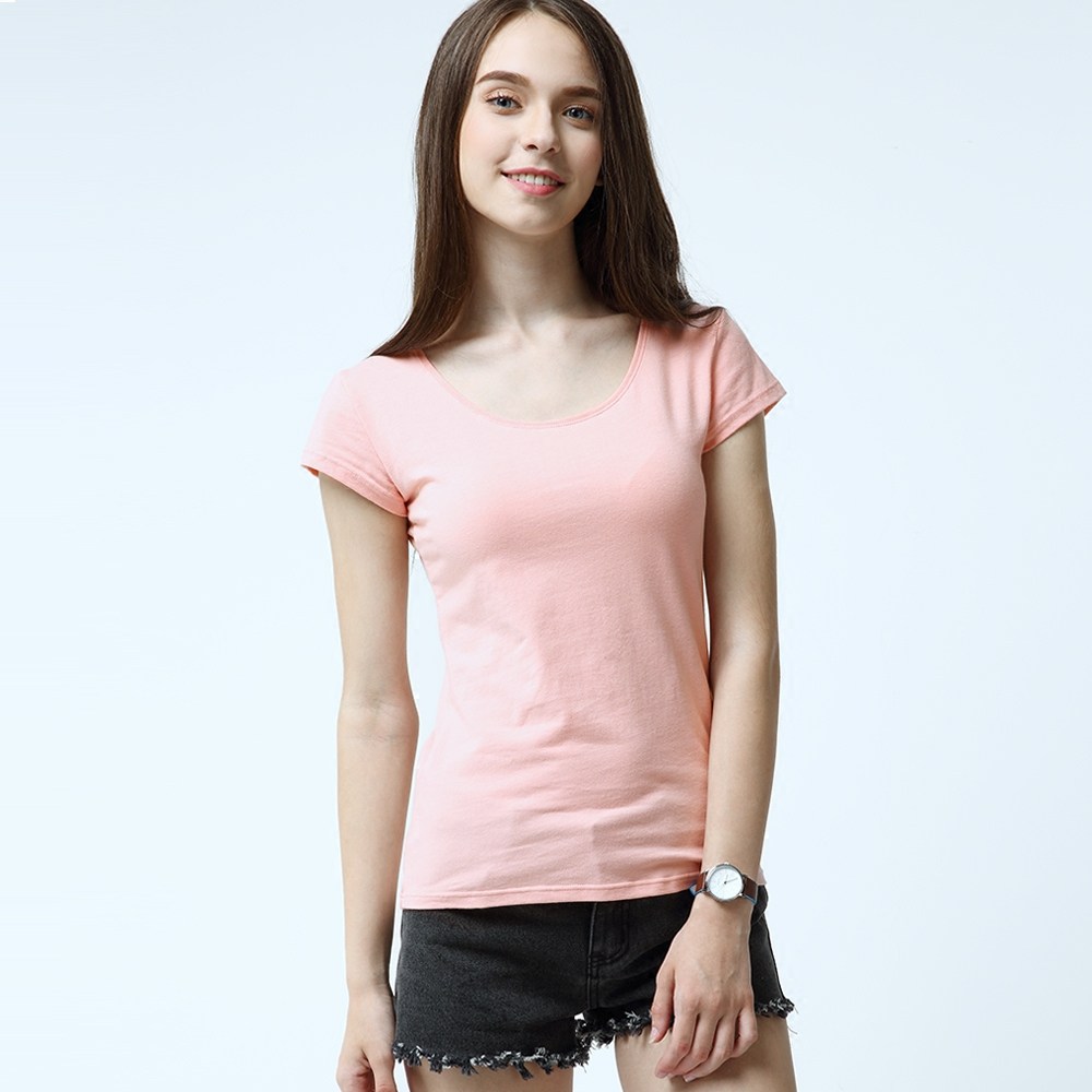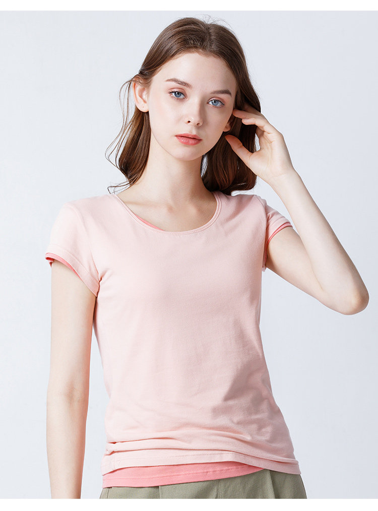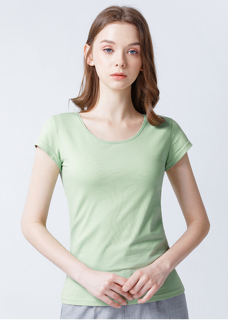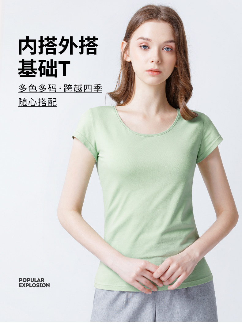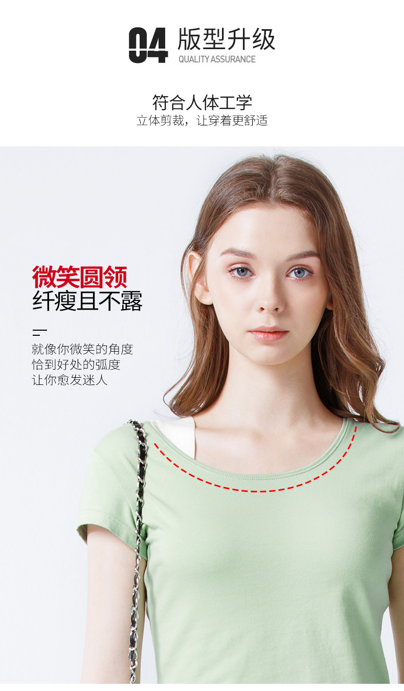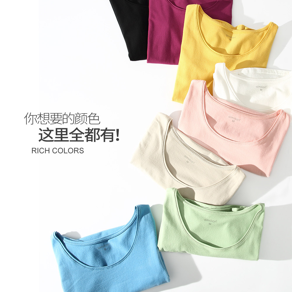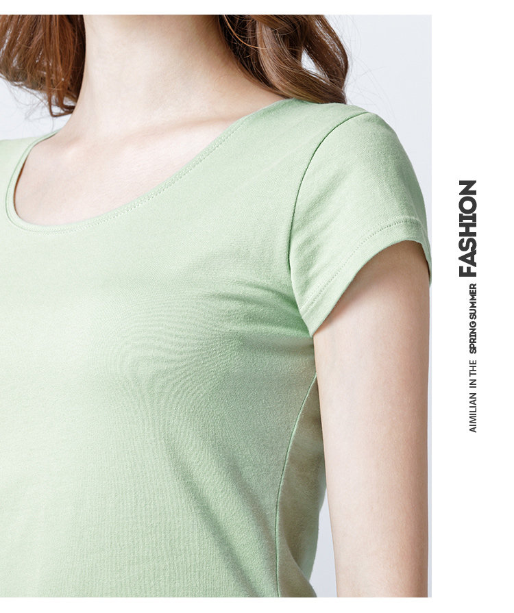 艾米恋 Хлопковая цветная белая короткая базовая приятная телу футболка с коротким рукавом, облегающий крой