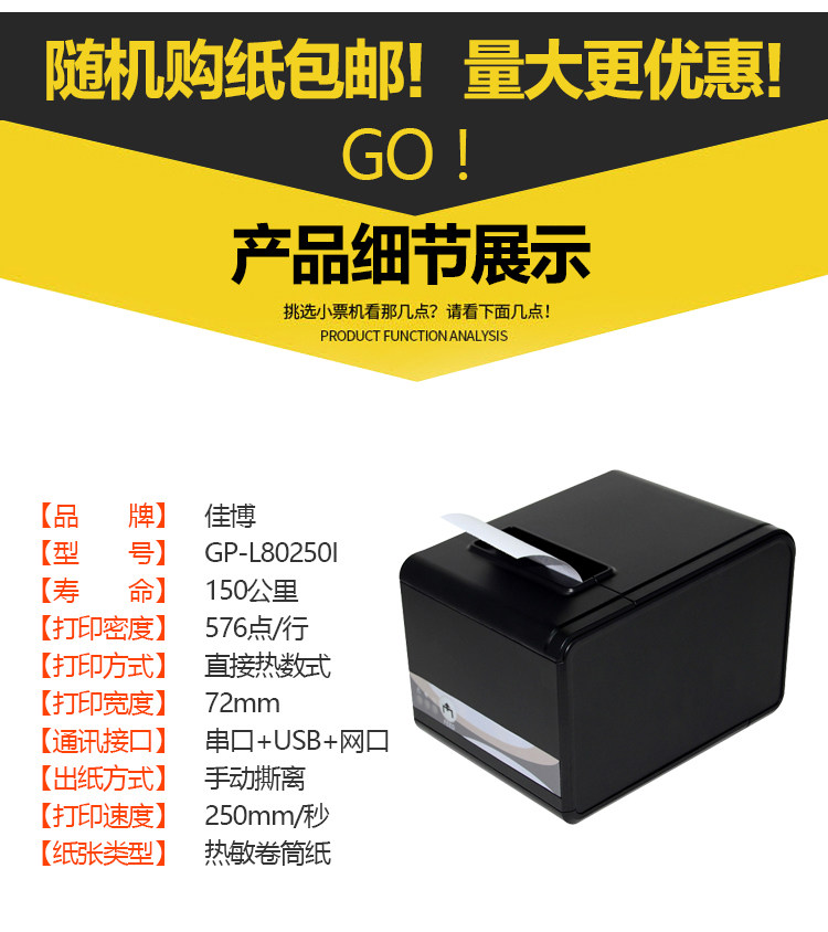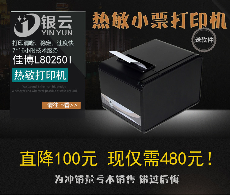 Jiabo gp-l80250i маленький билет термистор принтер 80 мм вырезанный бумажный сеть рот кухня три принтера интерфейса