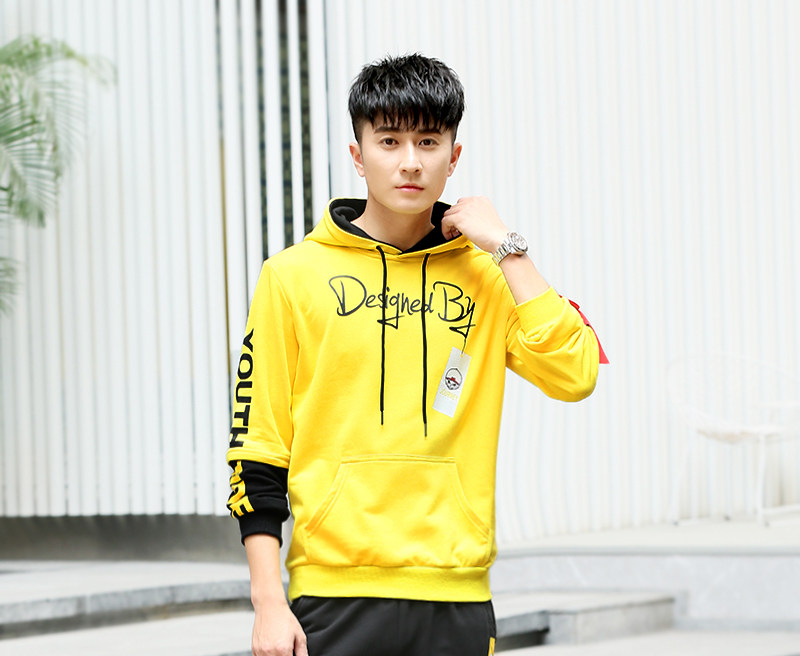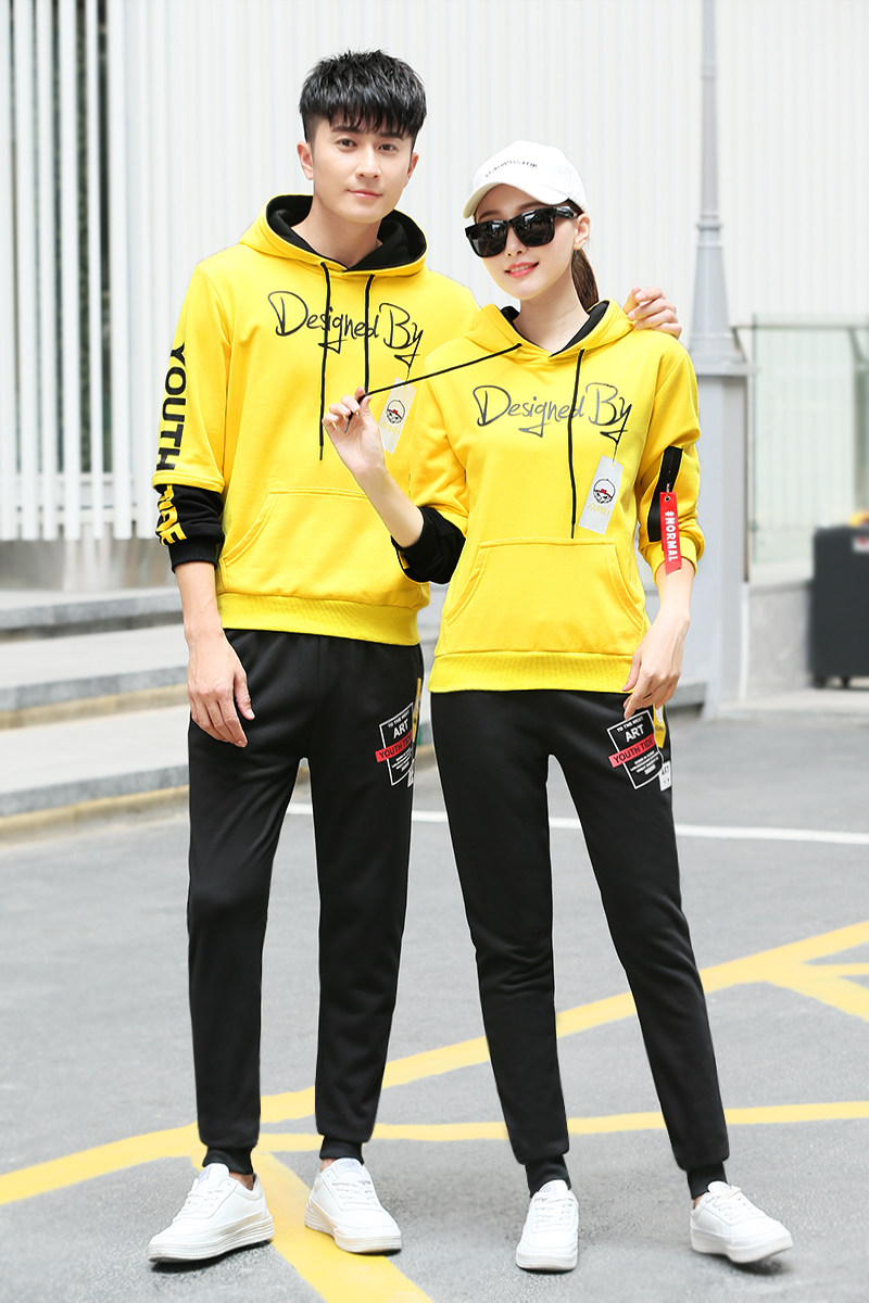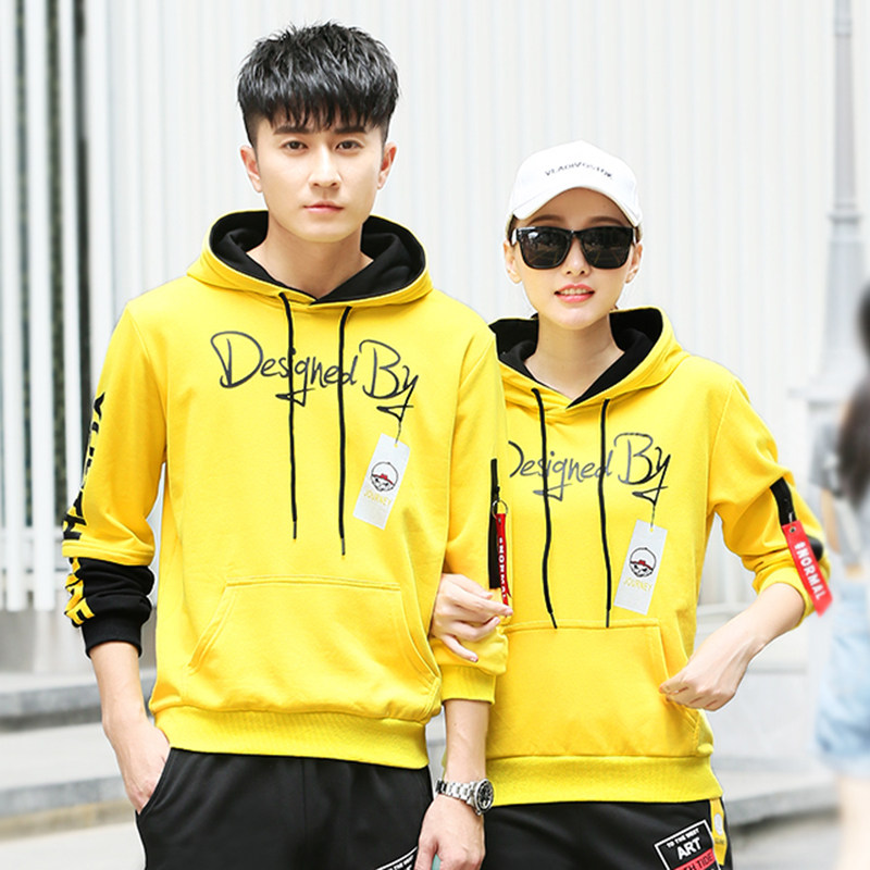 Осенний лонгслив, нарукавники, толстовка подходит для мужчин и женщин, желтый спортивный костюм, форма, для влюбленных, в корейском стиле
