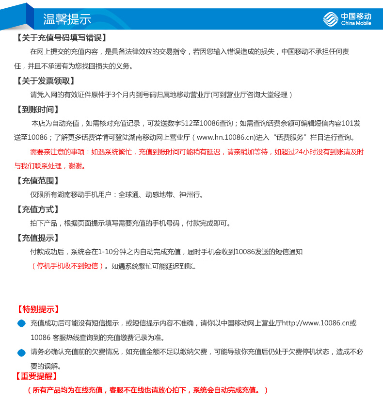 Hunan Mobile Phone Phone Bick Recharge 300 Юань быстрая зарядка Прямая зарядка 24 часа автоматическая зарядка быстро прибывает