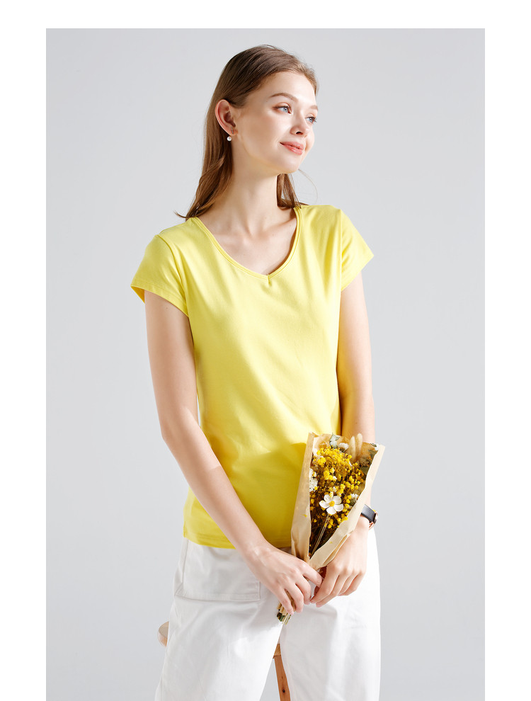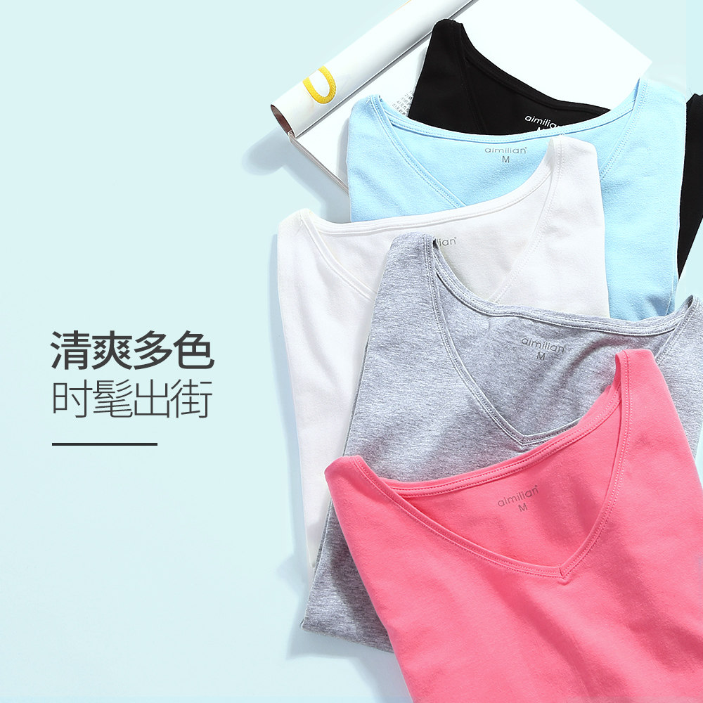 艾米恋 Хлопковая цветная белая базовая футболка, V-образный вырез, облегающий крой, короткий рукав, в обтяжку