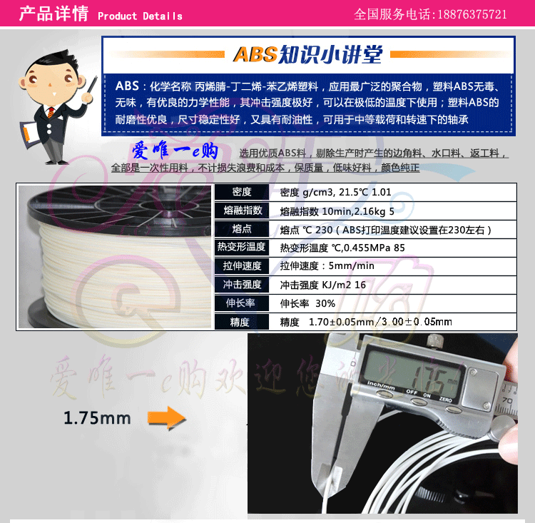 подходящийОборудование:Reprap, Makerbot, Ultimaker,Mendel, Huxley Up, Weistek, Thing-O-Matic, Ult, Flash, Mai Rui и другие модели FDMНе блокируйте форсунку, не повреждайте машину.