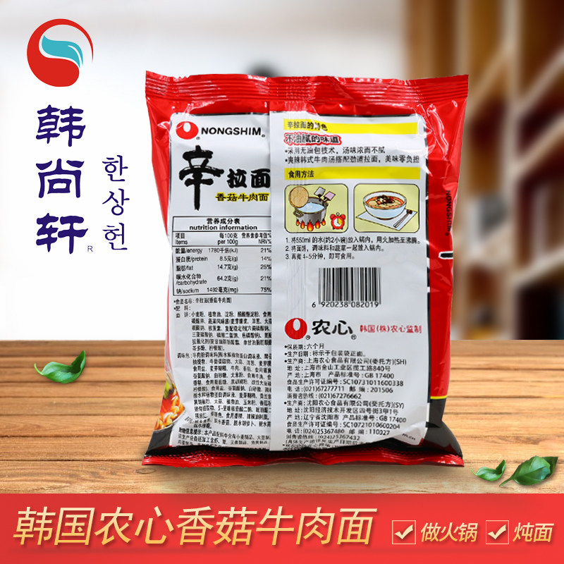 Нонгсин Много вкуса пряной капусты шиитаке грибов грибной лапши корейская лапша Синдийская лапша корейская драма и та же самая вареная лапша для мгновенной лапши