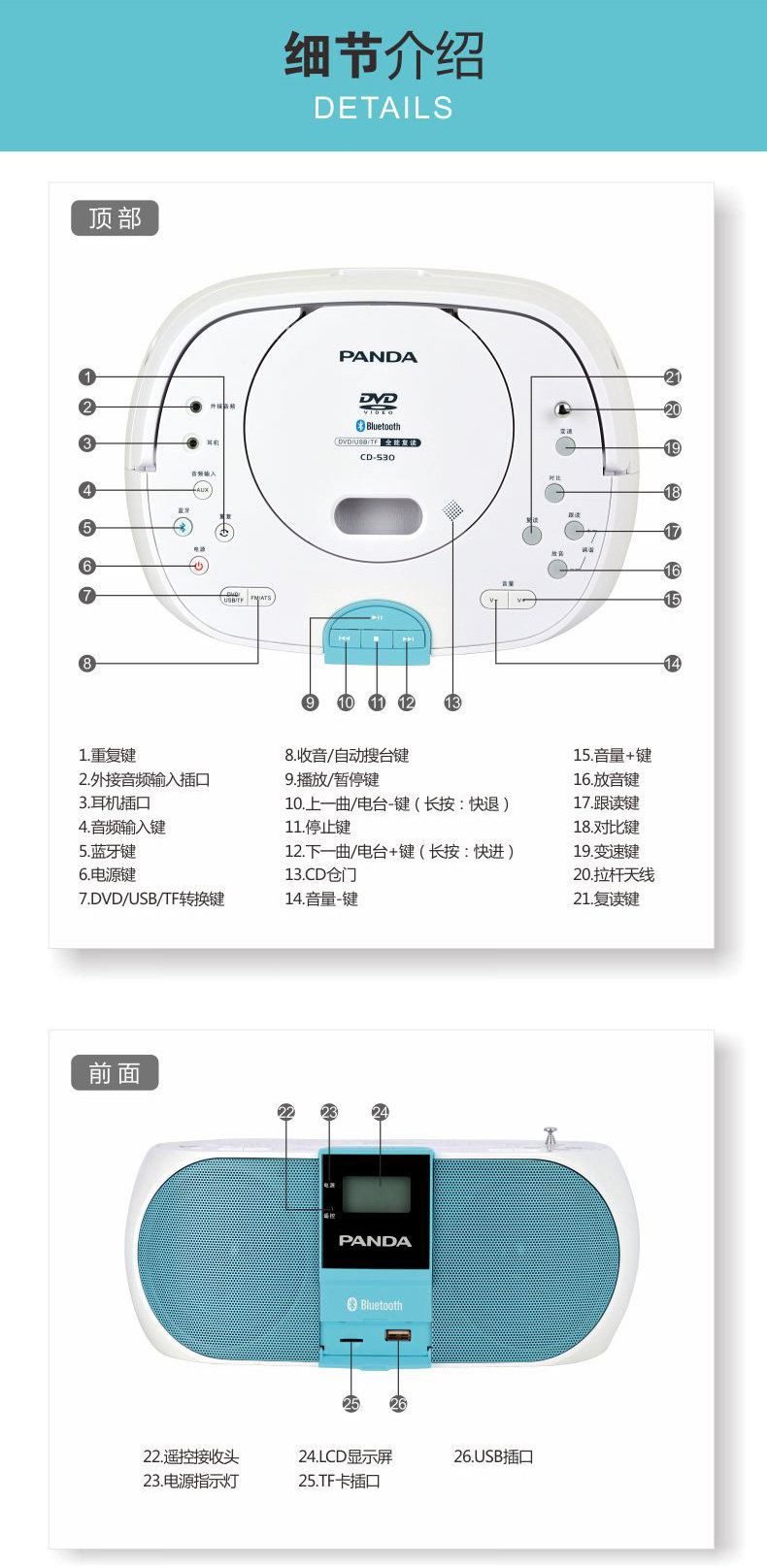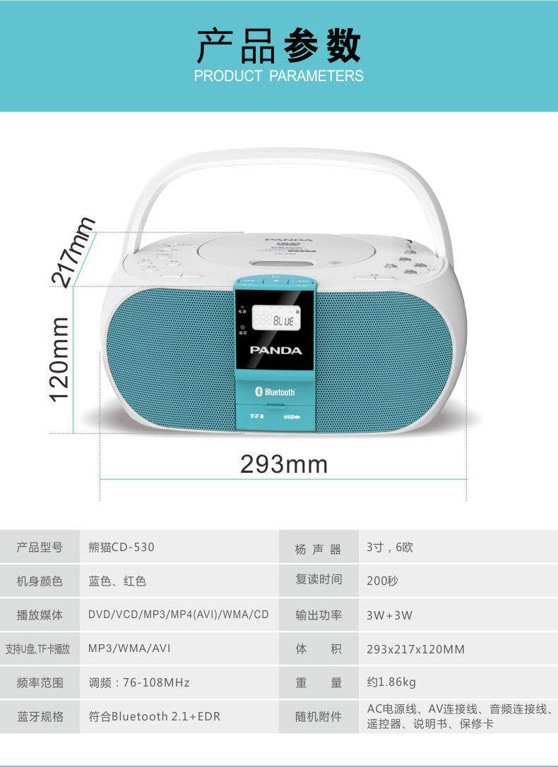 Альбом Panda CD Player DVD CD -ROM WAV Формат музыкальный игрок английский диск с обратно