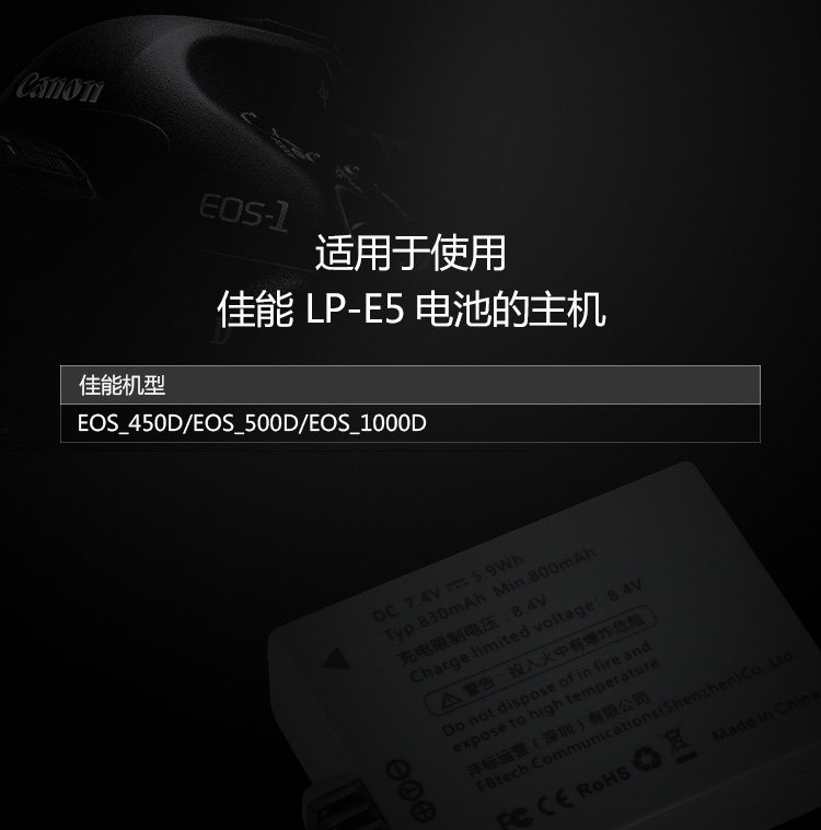FB/沣标 LP-E5 Canon EOS 450D 500D 1000D Батарея камеры