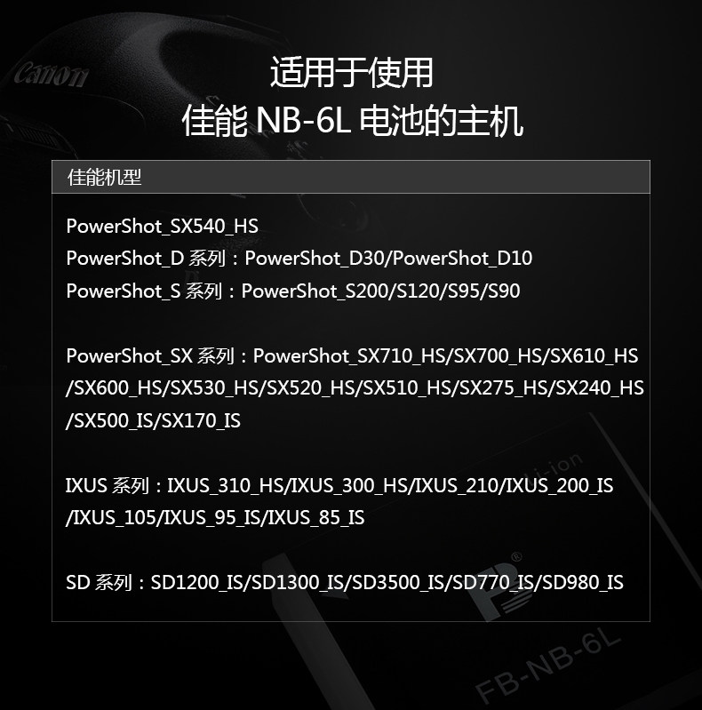 FB/沣标 Подходит для аккумулятора Canon IXUS 95 105 200 210 300 310 SX240 NB-6L.