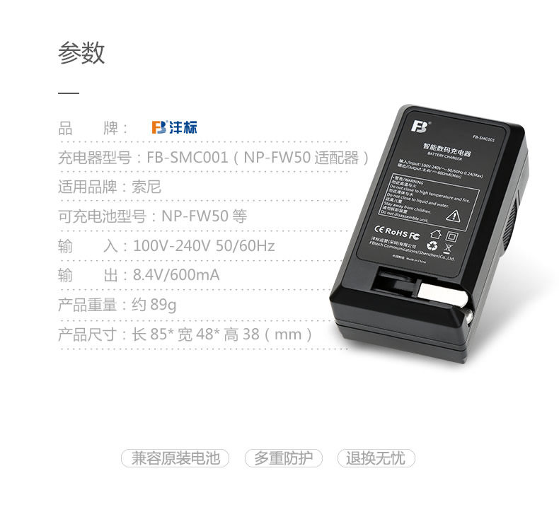 Зарядное устройство Fengbiao NP-FW50 подходит для зарядного устройства a7 a7r2 a7m2 a6000 NEX-5T.