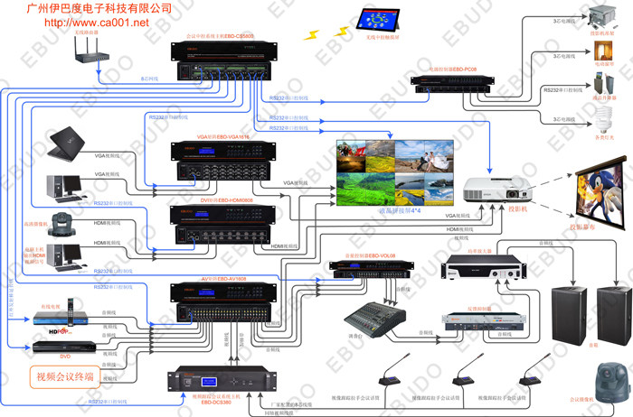 8 -й мощный контроллер используется на конференции конференции между Гуанчжоу Ибуро, которая может достичь централизованного контроля всей системы, тем самым достигая автоматического централизованного управления шторами, шторами, огнями и периферическим оборудованием.