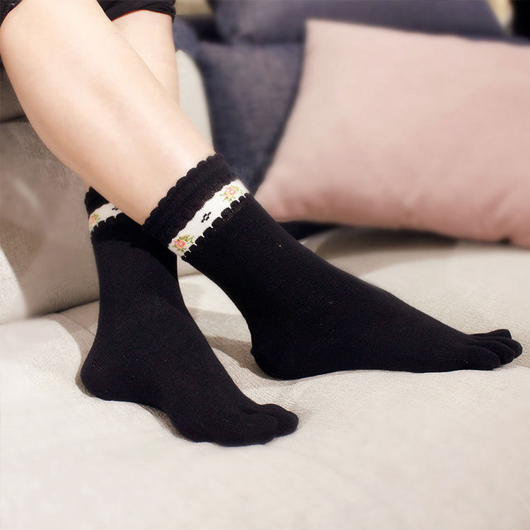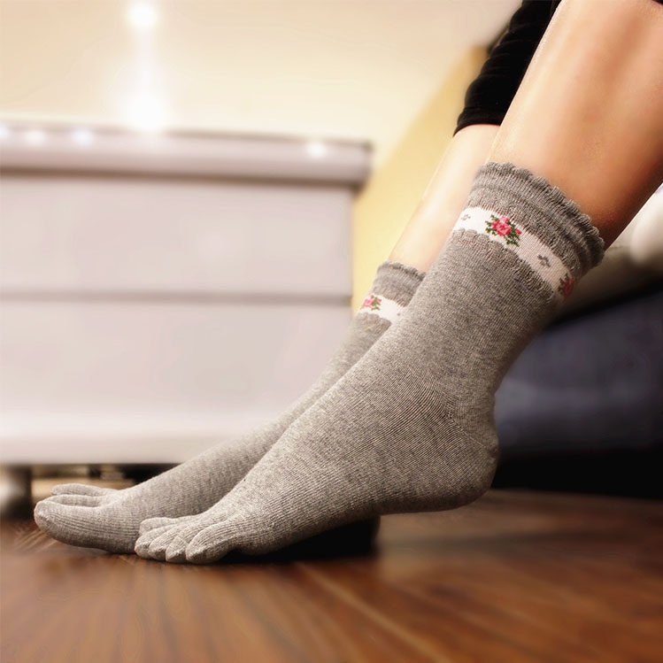 Весенние хлопковые дышащие носки в форме цветка для пальцев на ноге, средней длины