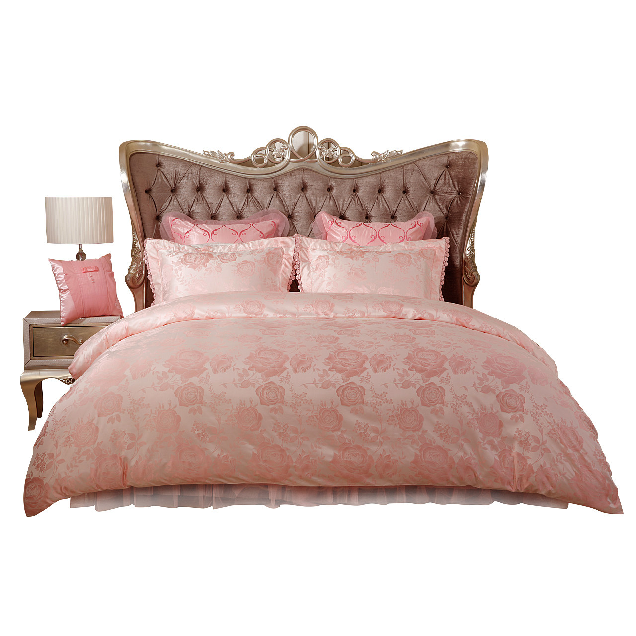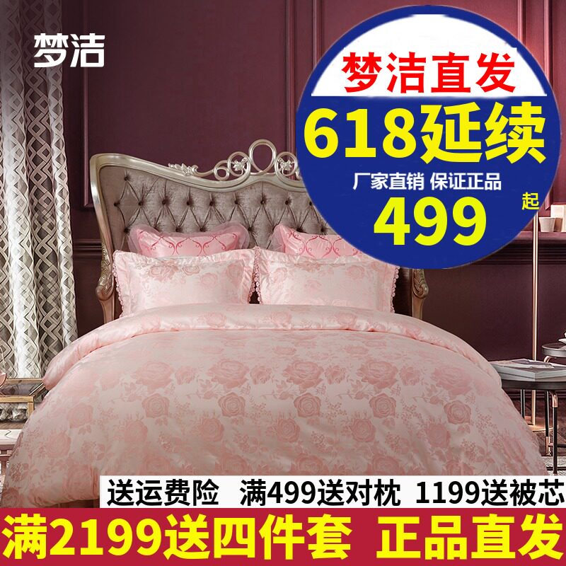 Mengjie Home Textile Wedding Wedding Set Set Set Swedding Bedding Pink Lace Jacquard Netwedding Kit Love in noona