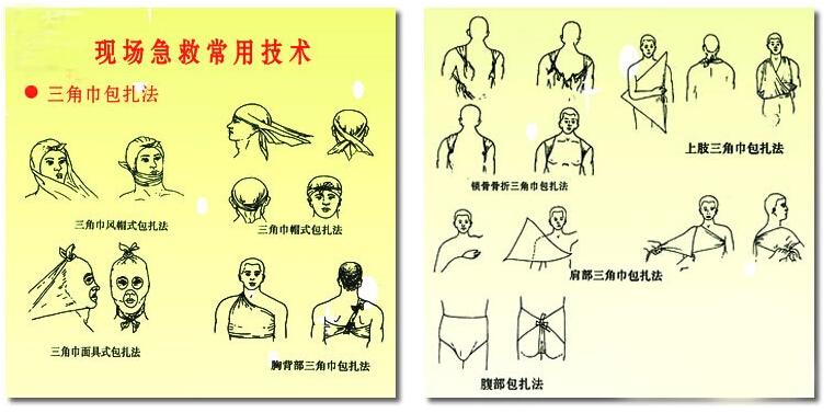 Треугольная повязка особенно подходит для перевязки различных крупных ран, а также раны нарушений в организме человека.Персонал первой помощи, который был профессиональным первым -техническим обучением или повязкой, может использовать его почти для повязки ран в любой части человеческого тела, поэтому почти все пакеты с первыми веществами оснащены треугольными повязками.