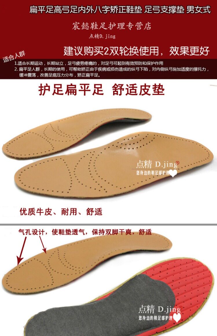 Кожаные амортизирующие дышащие корректирующие стельки