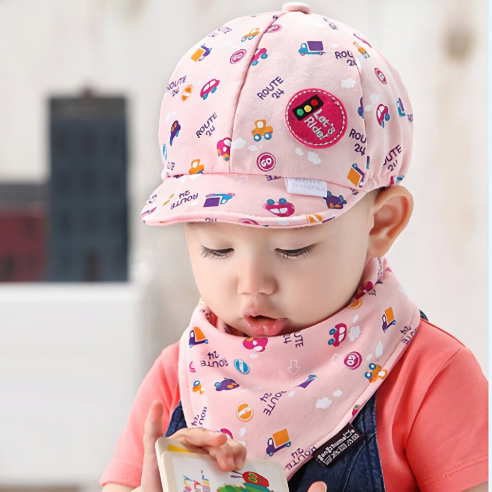 Хлопковая шапка подходит для мужчин и женщин для девочек, шарф, осенний демисезонный детский комплект для новорожденных, 2 шт, 2 лет, в корейском стиле