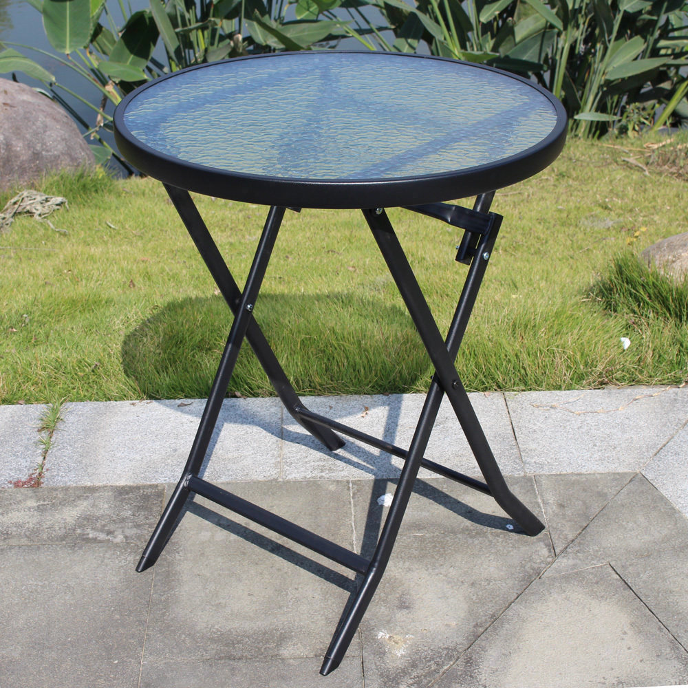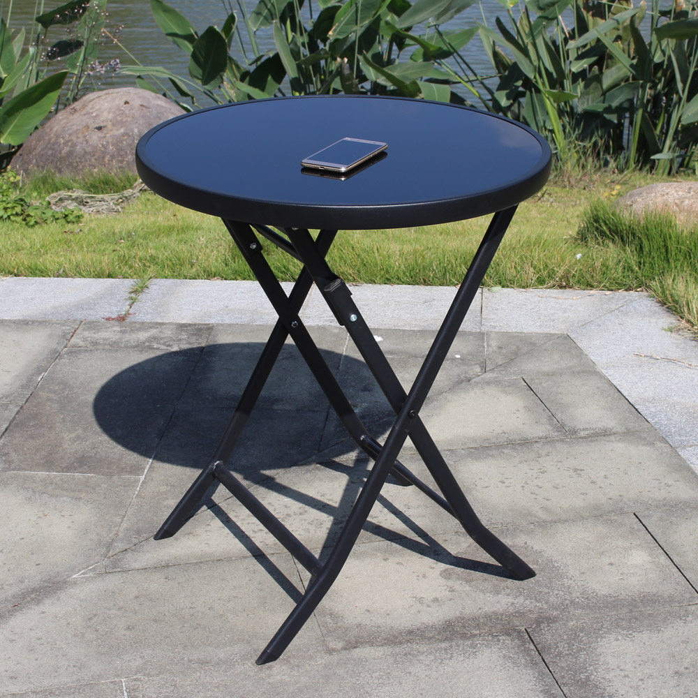 Кожа -до -глас -круглый стол на открытом воздухе складной двор складывает портативный обеденный стол кофе кофейный молочный чай магазин балкон Black Promotion