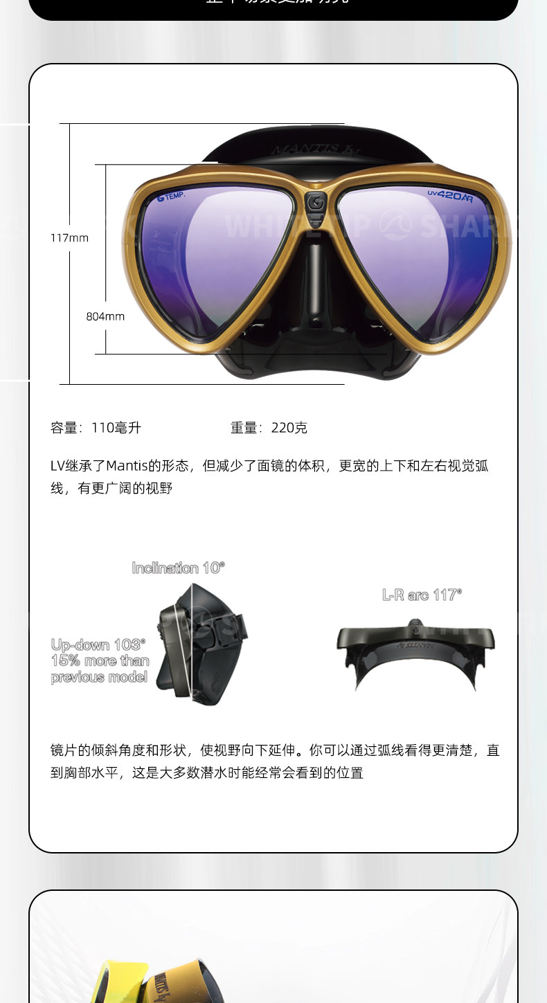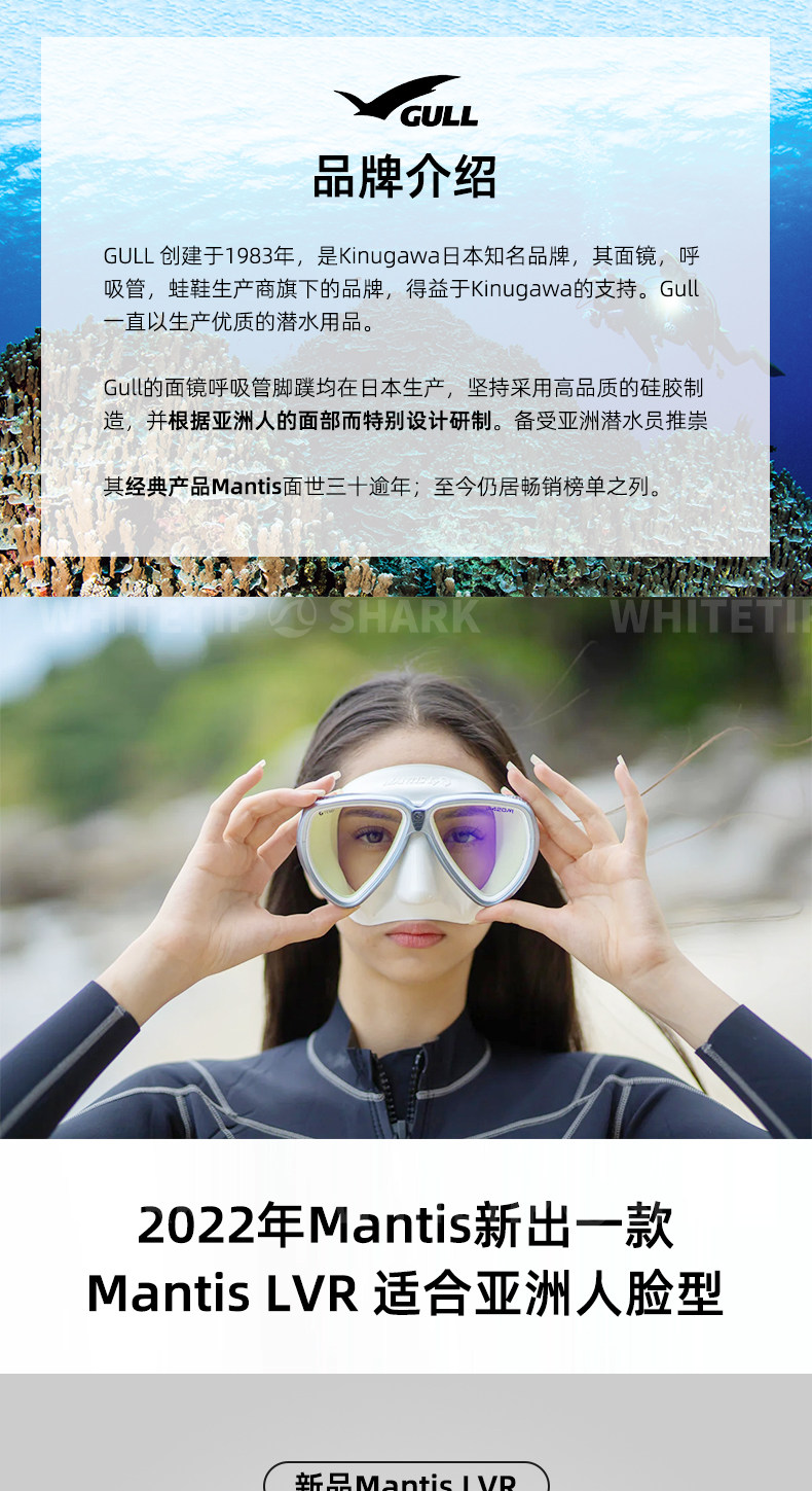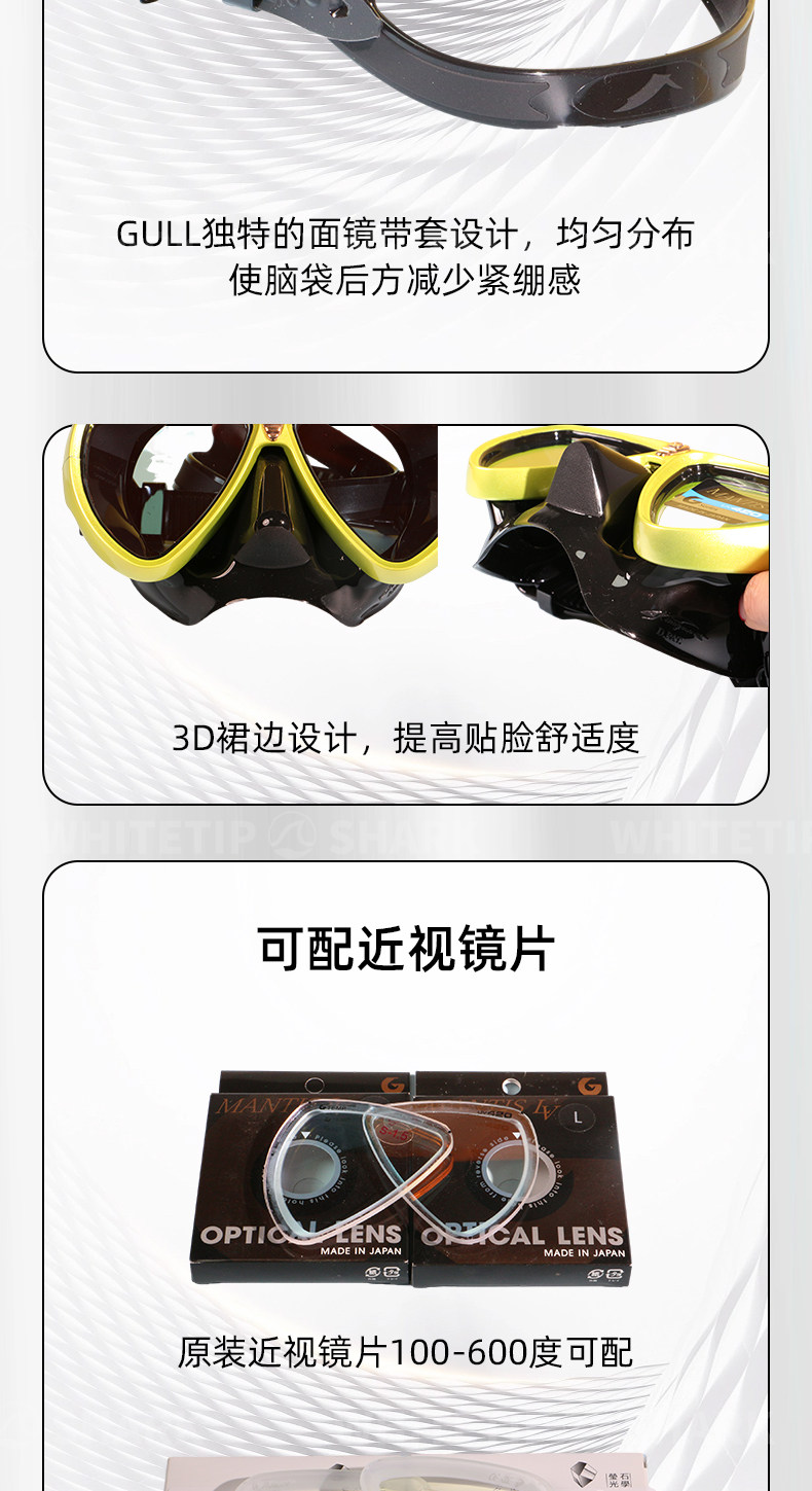 Белоперая акула Япония GULL Mantis LVR UV420 маска для дайвинга анти-УФ с линзой для близорукости