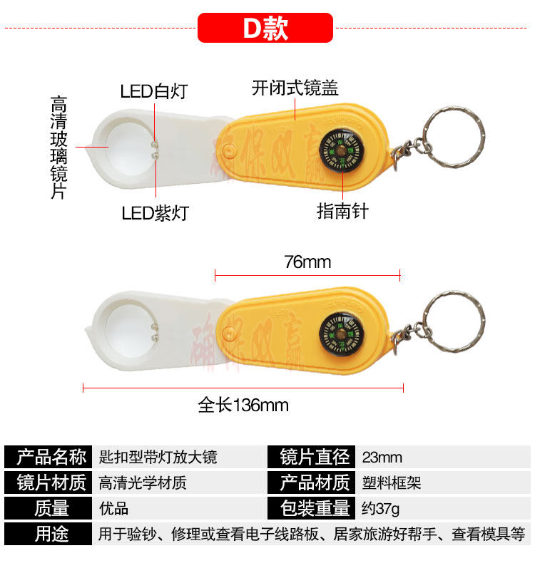 - Брелок, желтая лупа с подсветкой